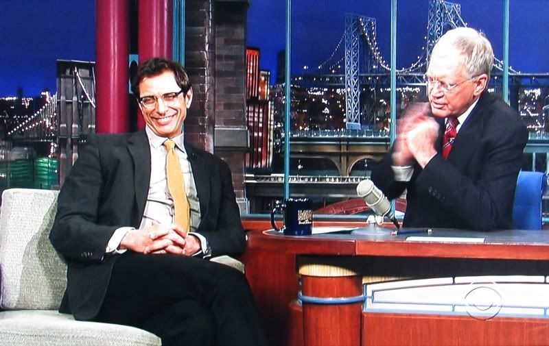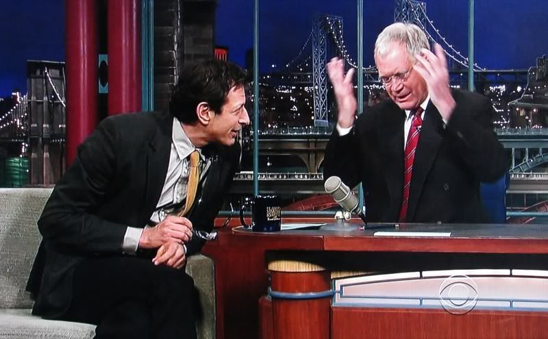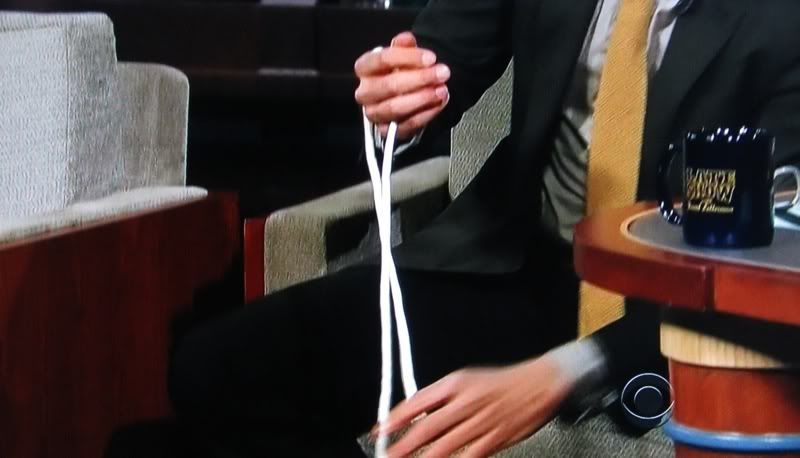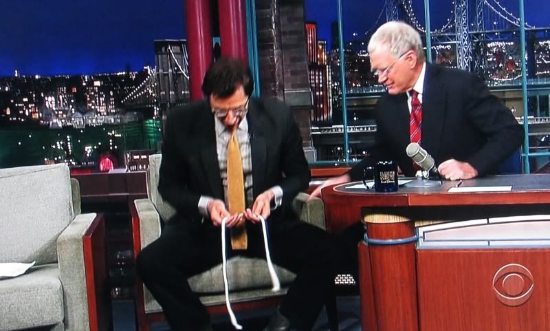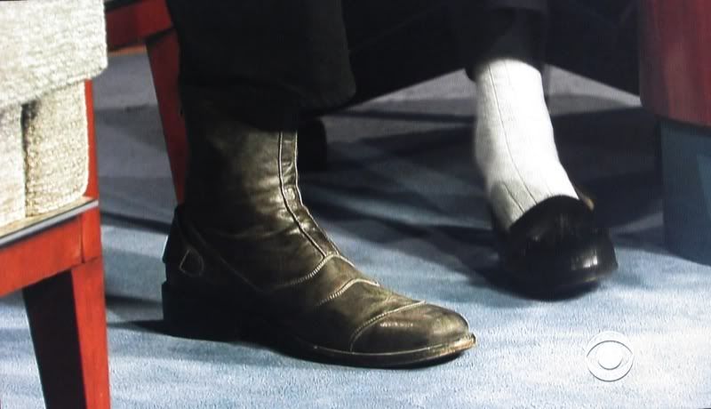 on Letterman last night....did you see those rope tricks? oh yes, my man is always prepared. how about those steve mcqueen boots, textured tie and color combo? and he tries to be cool, god bless him it shows.